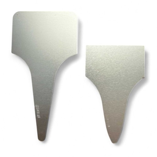 Etiquette de jardin en aluminium anodisé estampé à personnaliser au crayon gras (Garden Pen de Lyra) pour des marquages de très longue durée, ou avec l'alphabet à frapper.