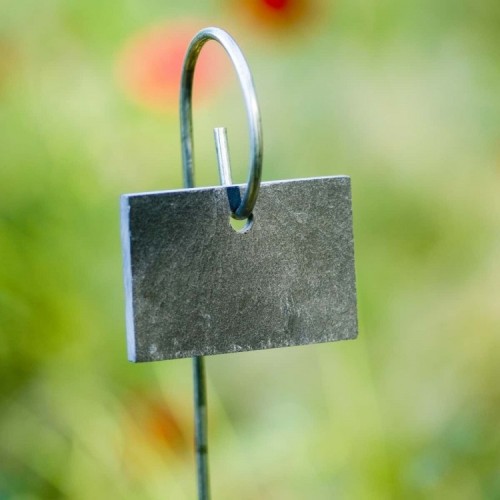 Étiquette de jardin en ardoise naturelle, perforée et brute clivée. Durable, sobre, élégante. Idéale pour marquer les plantes au jardin ou au potager. 7 formats disponibles.