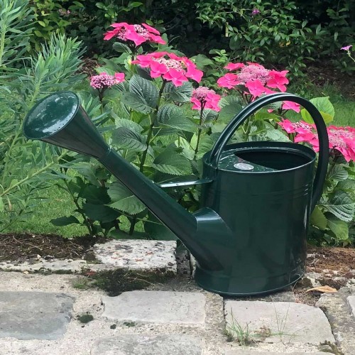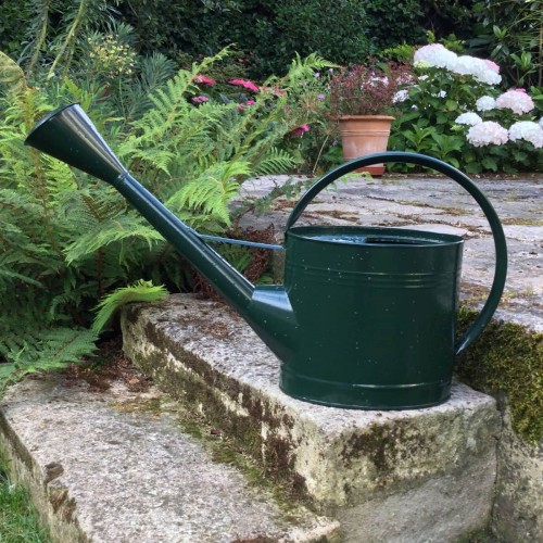 Un arrosoir Anglais en acier galvanisé et peinture Epoxy, pomme ronde pour une pluie fine et généreuse