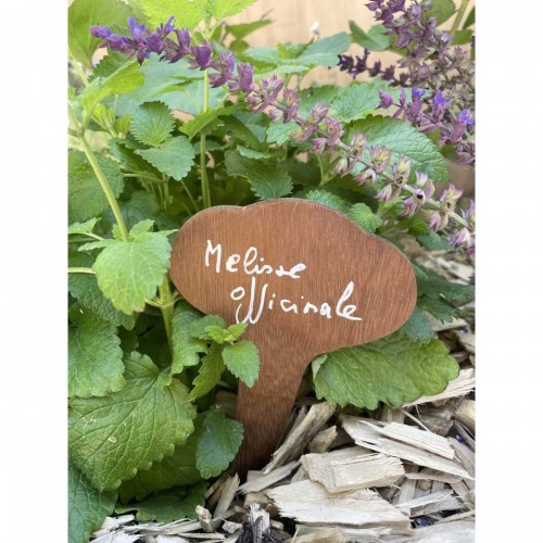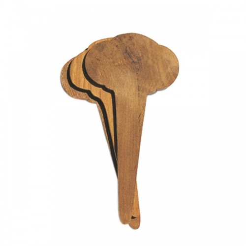 Le bois d'Iroko est utilisé dans les jardins pour réaliser des planchers, des palissages et aussi du mobilier de jardin. Ces étiquettes ont été découpées dans des chutes d'Iroko, elles se patineront naturellement saison après saison dans une belle teinte grise.