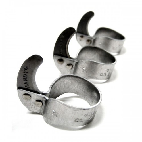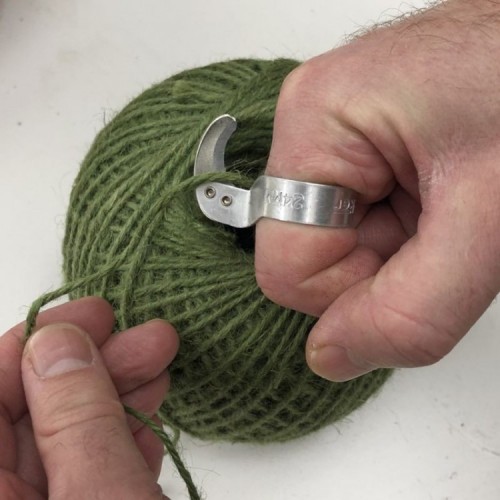 L'outil se porte comme un anneau, à l'index par exemple. Il coupe d'un seul geste la ficelle, le raphia sans risque de se blesser.
