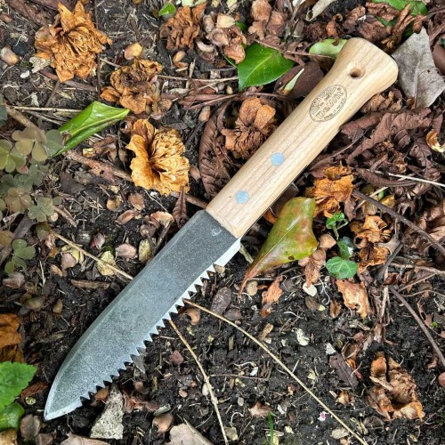 Un outil de jardin qui prend la forme d'un couteau avec une lame dentelée