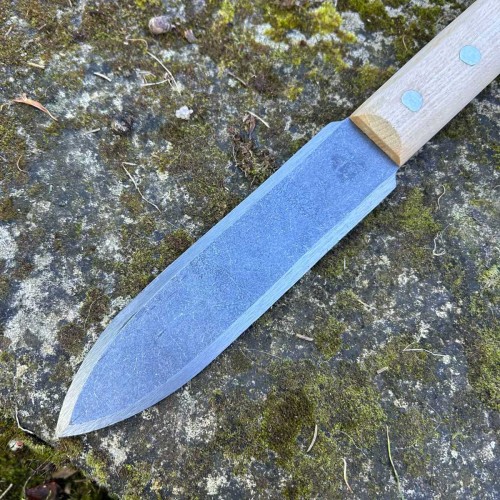- La lame est épaisse et rigide est très solide, fabriquée en acier carbone forgé.