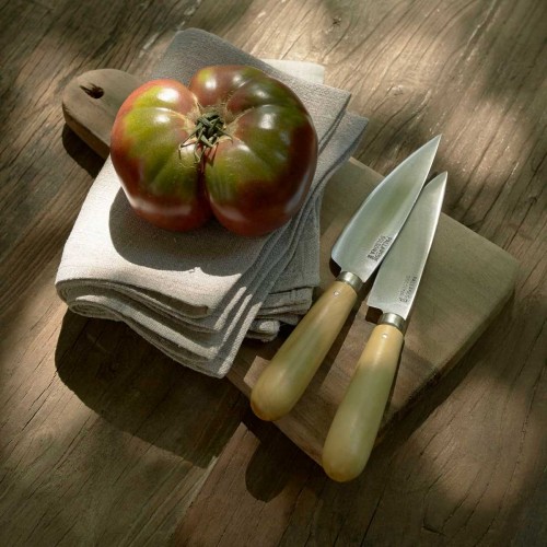 Le couteau de cuisine Pallarès se caractérise par son design simple et intemporel, et par ses qualités d'usage : une lame tranchante et un manche rond en bois de buis.