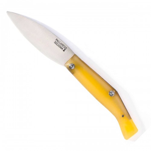 Ce couteau pliant est un classique indémodable de la marque catalane Pallarès. On reconnaît immédiatement sa lame inox à la forme caractéristique en feuille de laurier qui lui donne son tranchant précis.