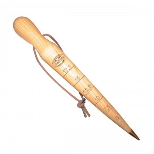L'outil est muni d'une dragonne en cuir ainsi que d'une graduation précise, avec 6 repères (5 / 7,5 / 10 / 12,5 / 15 / 17,5 cm) pour planter à la bonne profondeur.