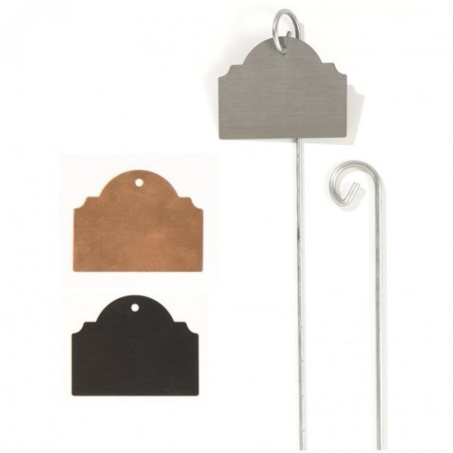Support élégant pour étiquette de jardin – compatible zinc, cuivre et ardoise. Trois hauteurs au choix. Fabrication française. Modèle 'Le Lude' au design inspiré par un modèle ancien conservé au Château du Lude sur les rives du Loir.
