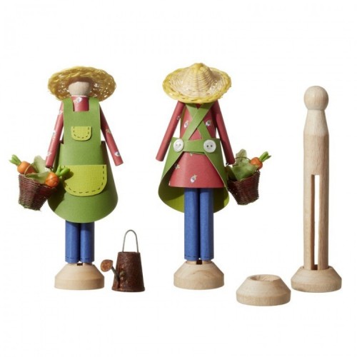 Sur une idée d'Isabelle Schwartz, détournez les pinces pour créer des petits personnages avec des bouilles toutes rondes. Personnalisez-les avec des papiers anciens ou des papiers colorés. Retrouvez-les dans le kit 'Lutins magiques' avec des patrons pour les habiller. Nous vous proposons aussi des petits socles en bois pour les poser.