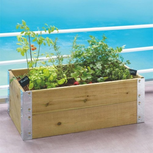 Le Carré de Jardin, un bac à poser prêt à planter. Dans les célèbres jardins de curés, étaient cultivées des plantes médicinales, aromatiques et potagères, disposées en carrés de petite surface, afin d'en faciliter l'entretien et la récolte. Le Carré de Jardin renoue avec cette tradition. Que vous soyez jardinier débutant ou aguerri, vous pouvez en profiter ! Facile à installer - Vis prémontées, montage rapide - Fourni avec un feutre géotextile (à disposer à l'intérieur pour éviter la dispersion du terreau lors des arrosages)Adapté aux petites surfacesPratique pour cultiver aromates, fleurs et légumes en petites quantitésEsthétique - Avec des matières nobles (bois classe 4 et acier galvanisé à chaud), le Carré de Jardin est un objet de qualité, au charme intemporel.D'un entretien réduit - Inutile de bêcher. Les plantations, l'arrosage ou le désherbage se font facilement et naturellement ; dans un carré de 74 cm, tout est à portée de main !Une qualité qui dure - Pour une meilleure longévité, les piquets sont en acier galvanisé à chaud afin d'éviter la corrosion.Format : 74 x 39 cm, hauteur 30 cm Contenance 75 litres