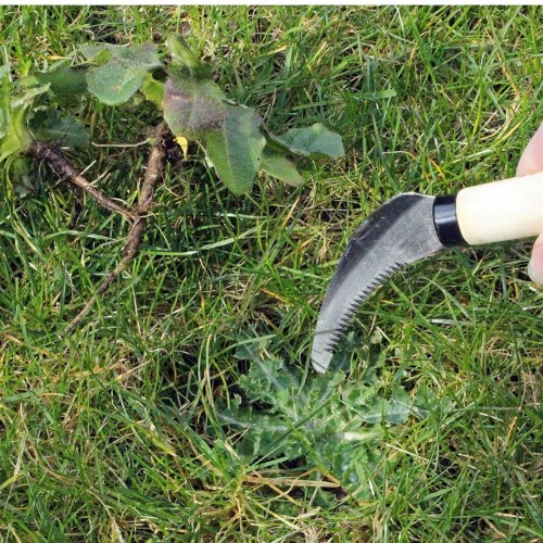 En acier carbone, cet outil est solide et ne lâche pas sa prise dans la féroce bagarre avec les pissenlits, et autres plantes invasives qui s'obstinent à parsemer votre gazon