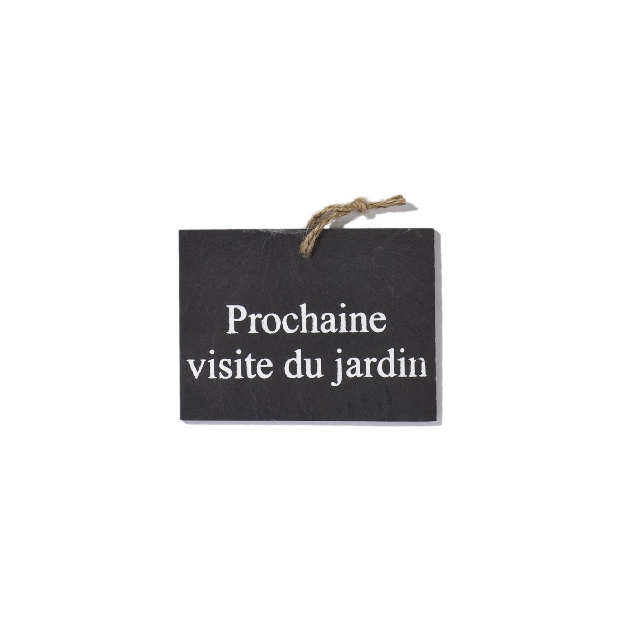 Plus de détailsArdoise perforée clivée 'Prochaine visite du jardin' avec perforation et ficelle naturelle ou à l'aide d'un support Lily.
