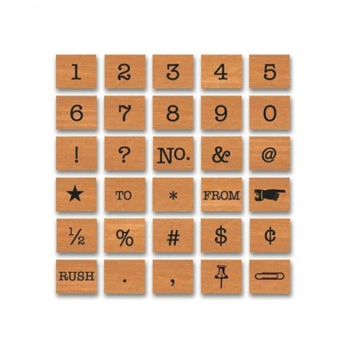 Dans une grande boite en métal, 30 tampons Chiffres & Symboles 10 tampons chiffres et 20 signes de ponctuation très utiles (@, # , &...