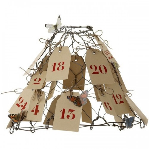 Sur une idée d'Isabelle Schwartz, notre cloche de jardin en grillage devient un calendrier de l'avent plein de fantaisie, un support pour coller nos papillons à découper etc.
