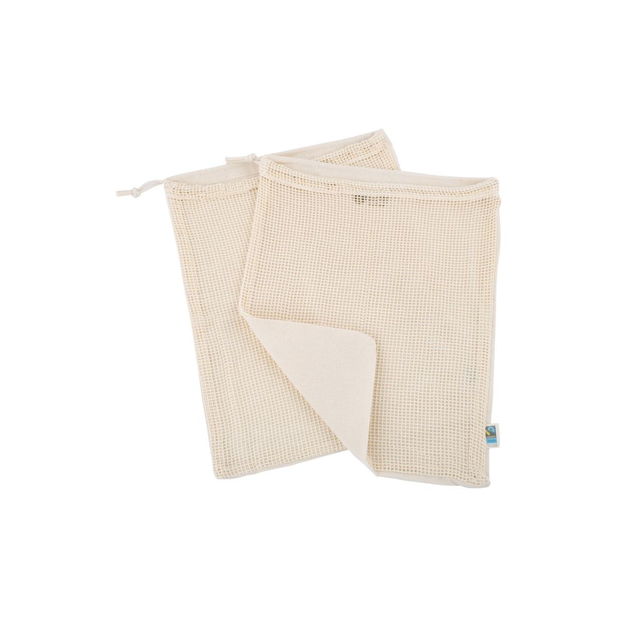 Fabriqué en coton biologique certifié GOTS et Fairtrade, ce sac associe au recto un filet de coton respirant et au verso une toile de coton souple, garantissant à la fois solidité, aération et protection de vos produits frais.