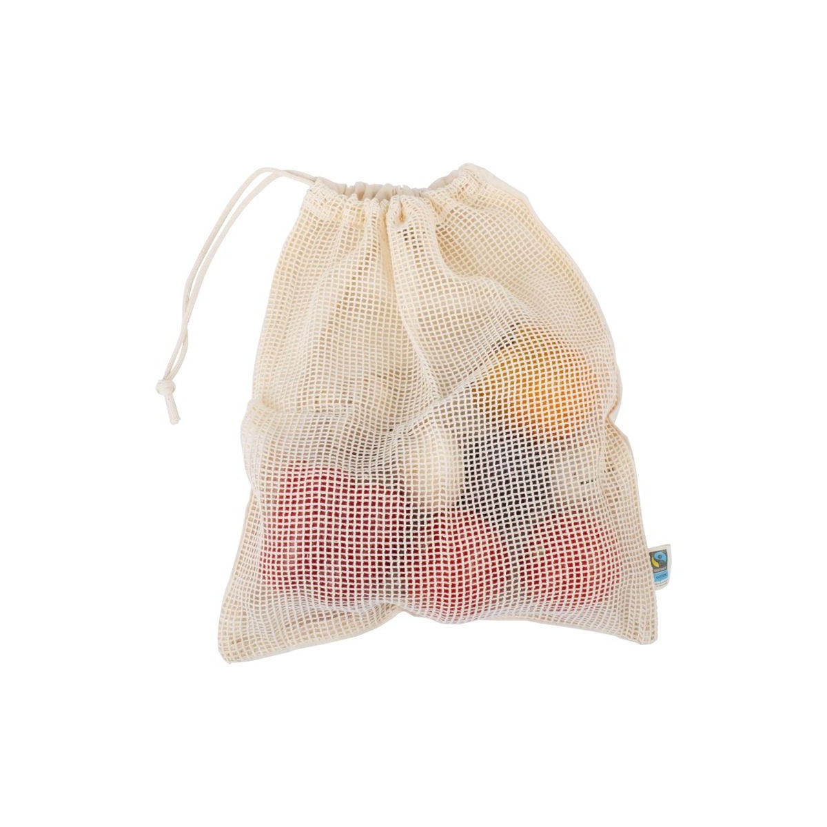 Son grand format permet de transporter facilement pommes, poires, pommes de terre, agrumes, légumes feuilles ou racines. Le lien coulissant en coton assure une fermeture simple et sécurisée.