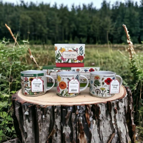 Une grande tasse en céramique avec une illustration vintage puisée dans les archives Cavallini