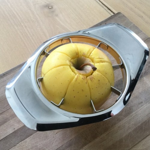 Alors si vous en êtes convaincu, ce petit accessoire solide et facile à utiliser vous permet de découper en un seul geste une pomme en 8 quartiers et de retirer le trognon.